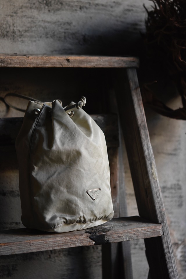 Vintage brand bag.(PRADA) nylon drawstring bag.(lightgray)