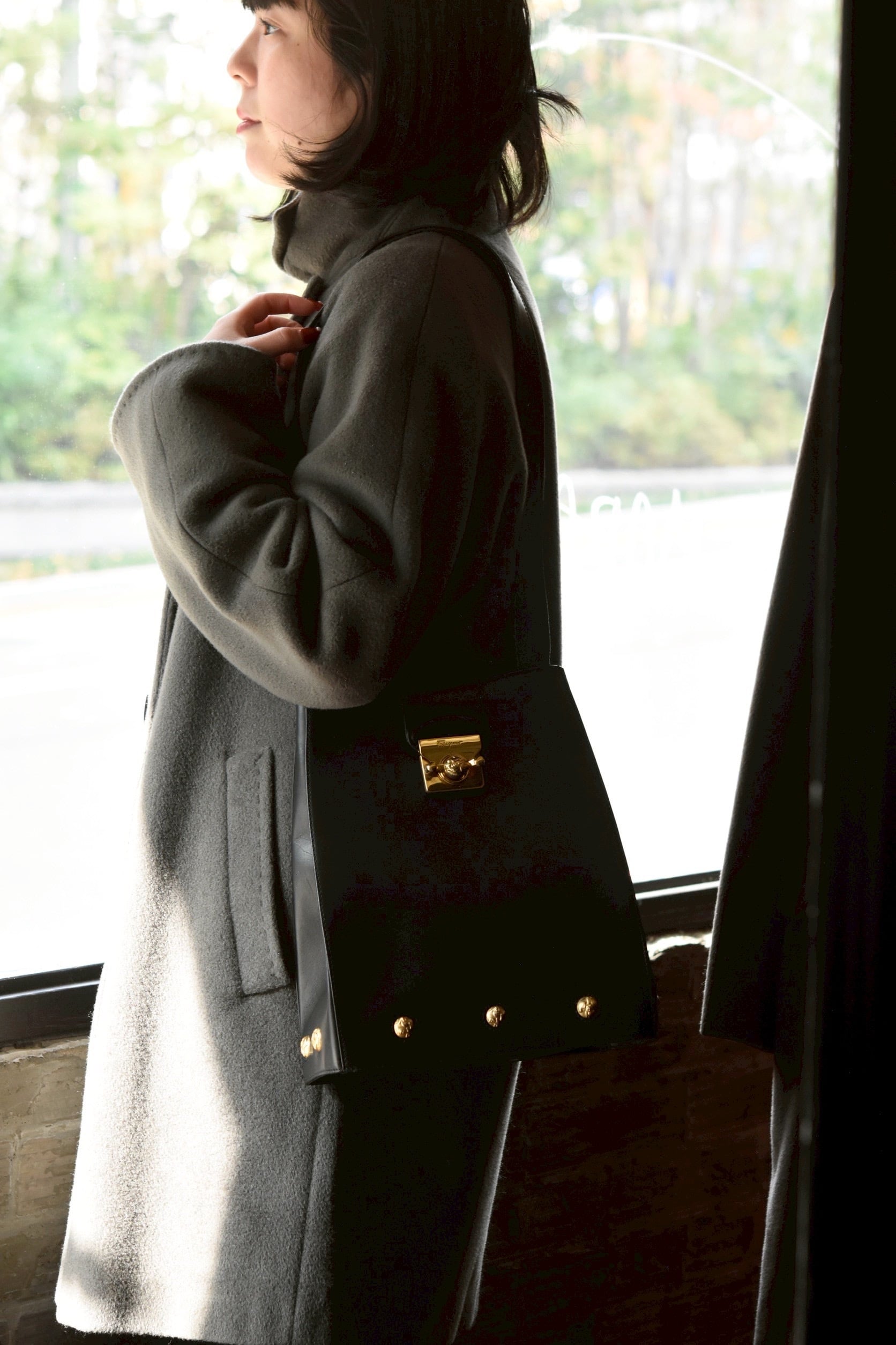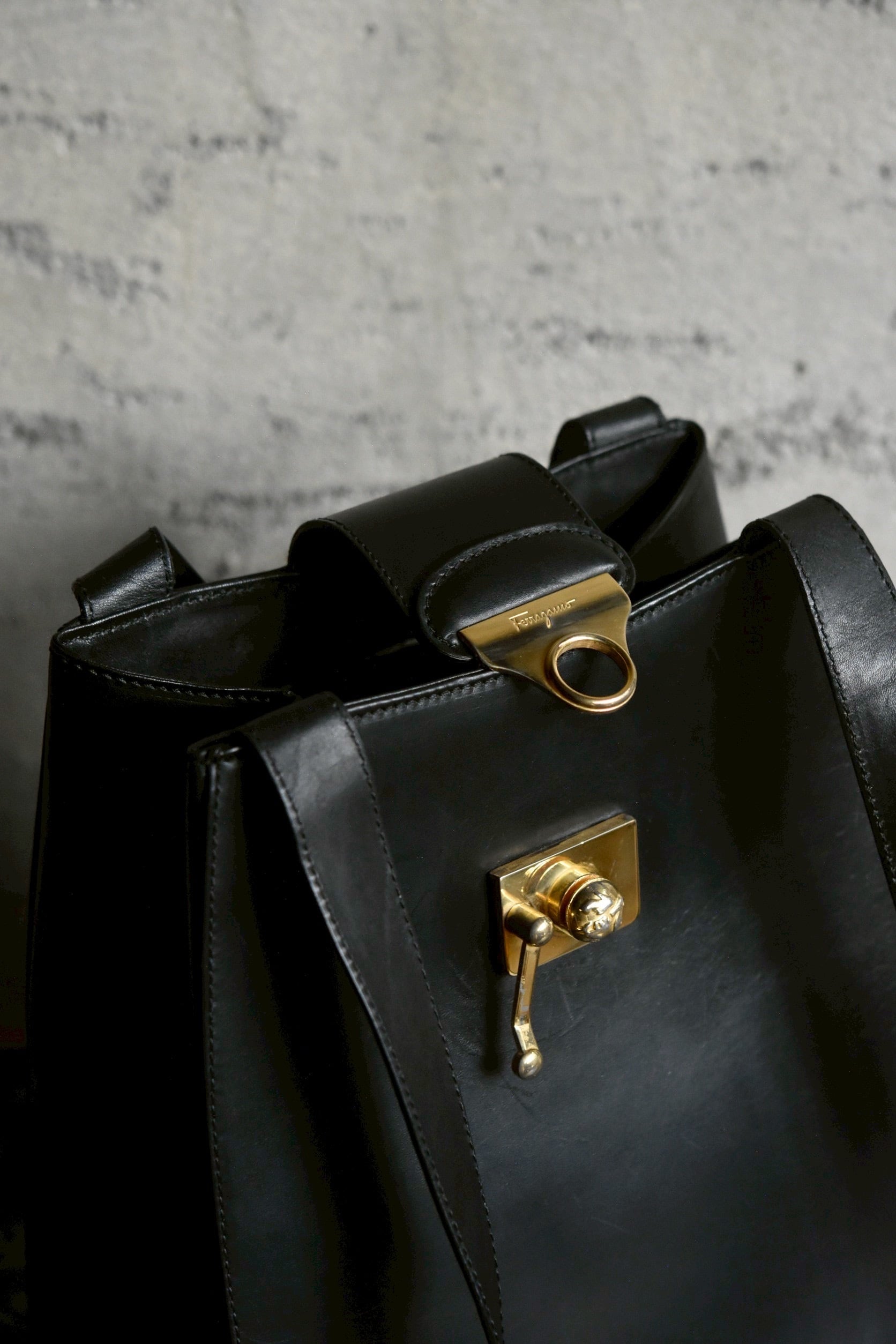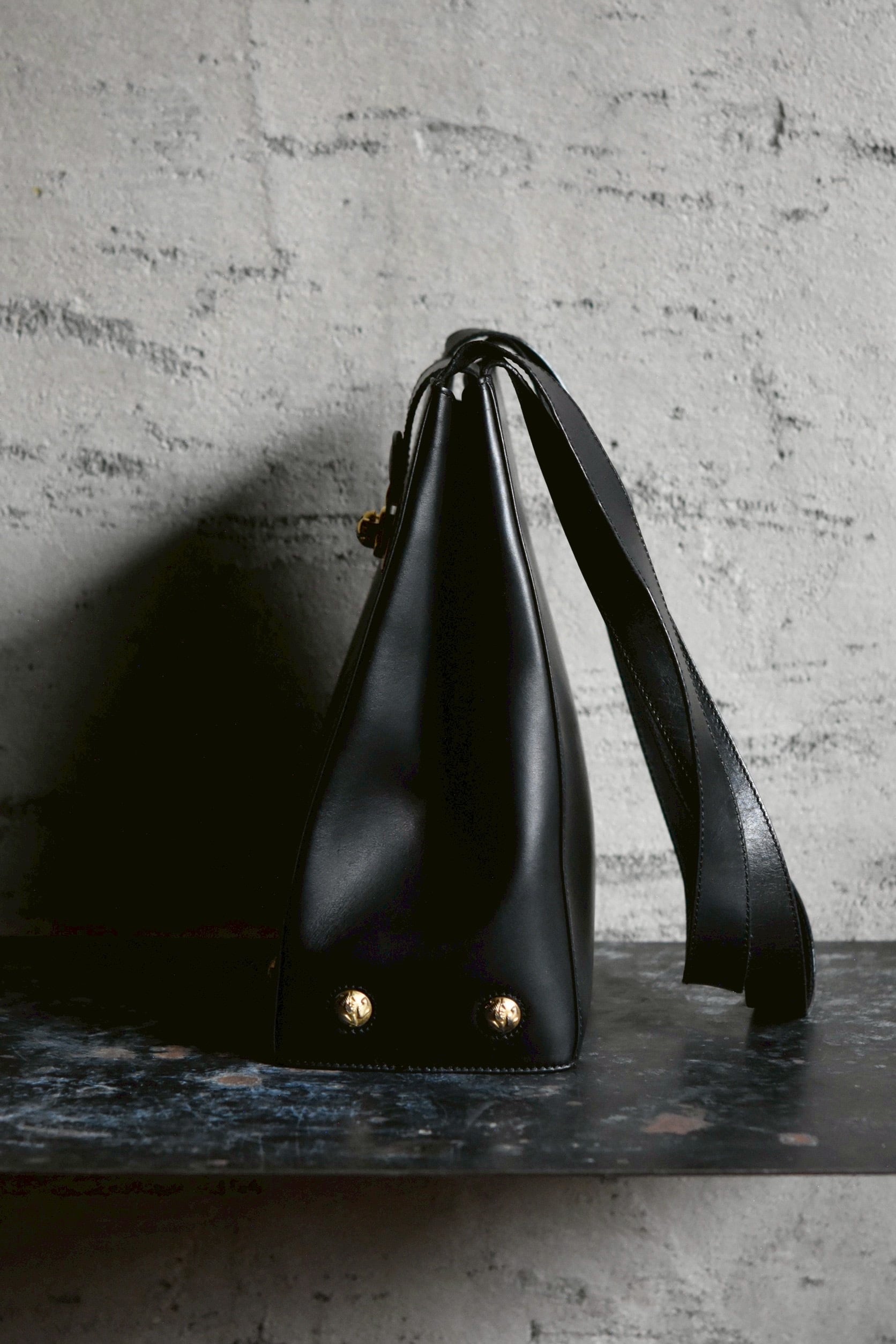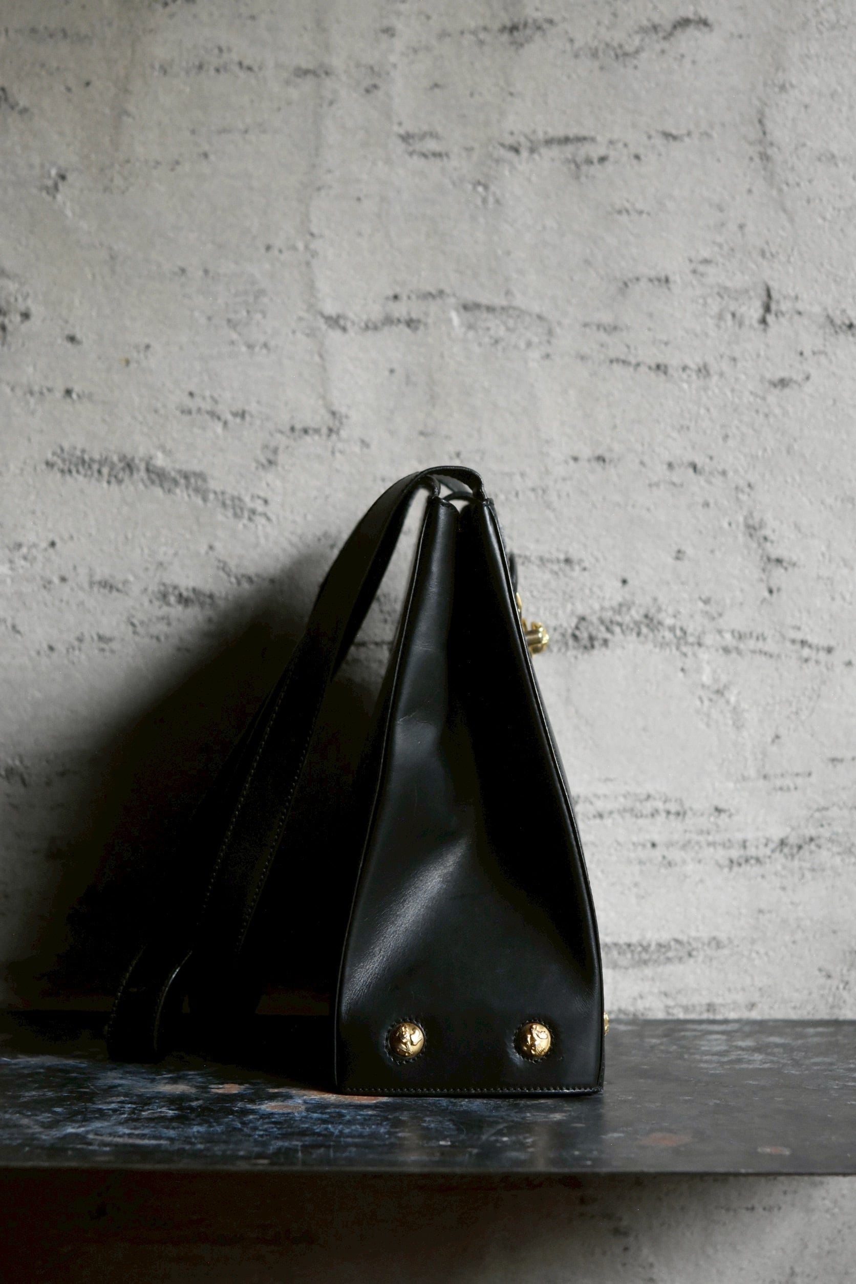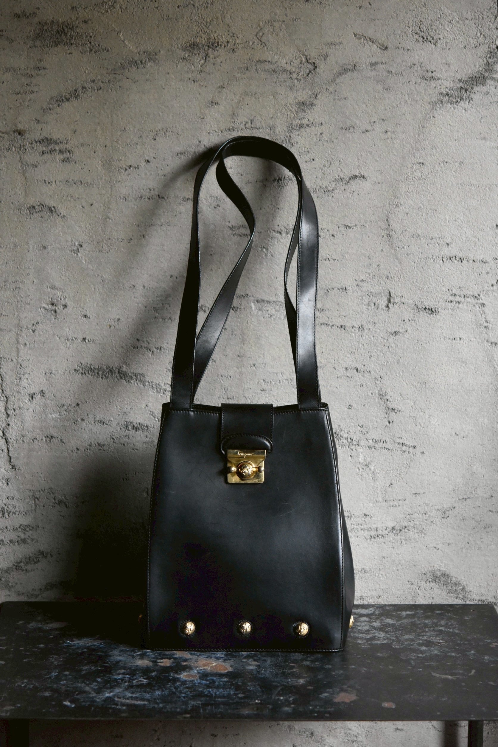 Vintage brand bag. Salvatore Ferragamo studs shoulder bag.(black)