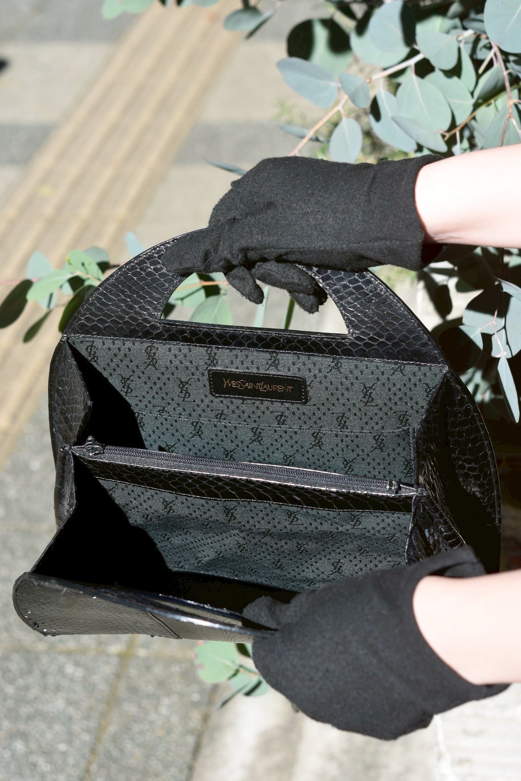 Vintage brand bag. "YSL" hand bag. (python)