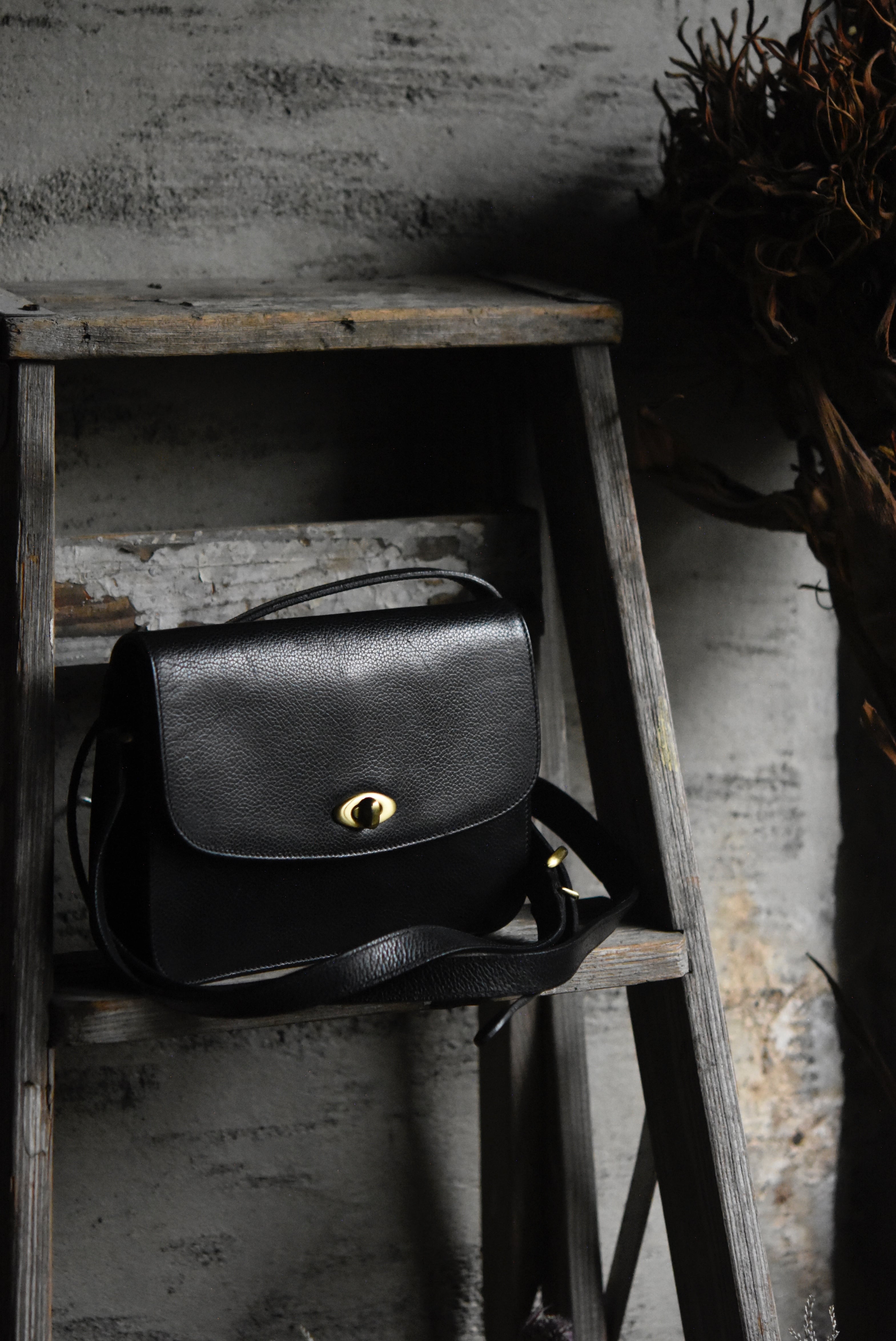 ブラックカラーのショルダーバッグは、