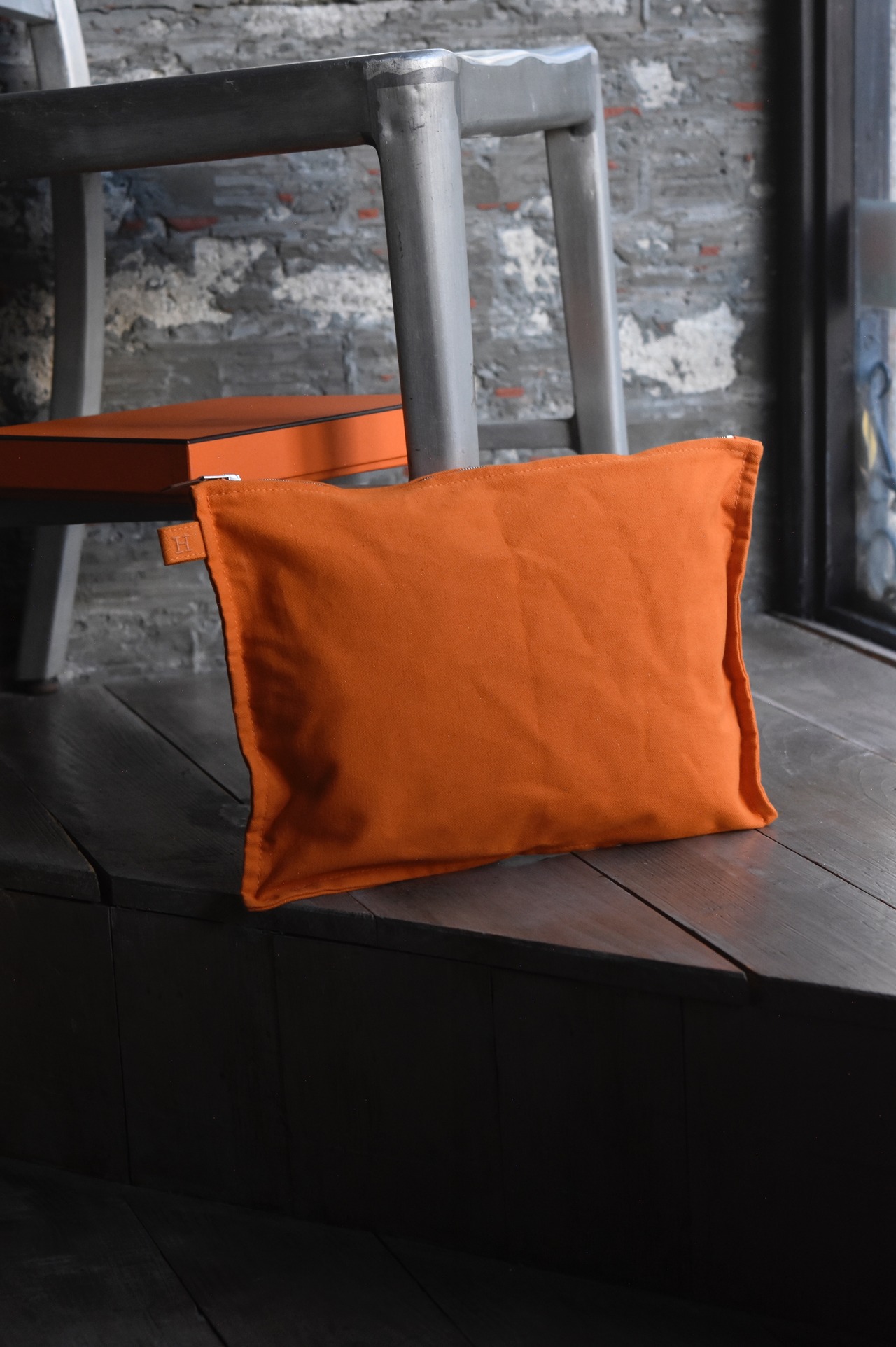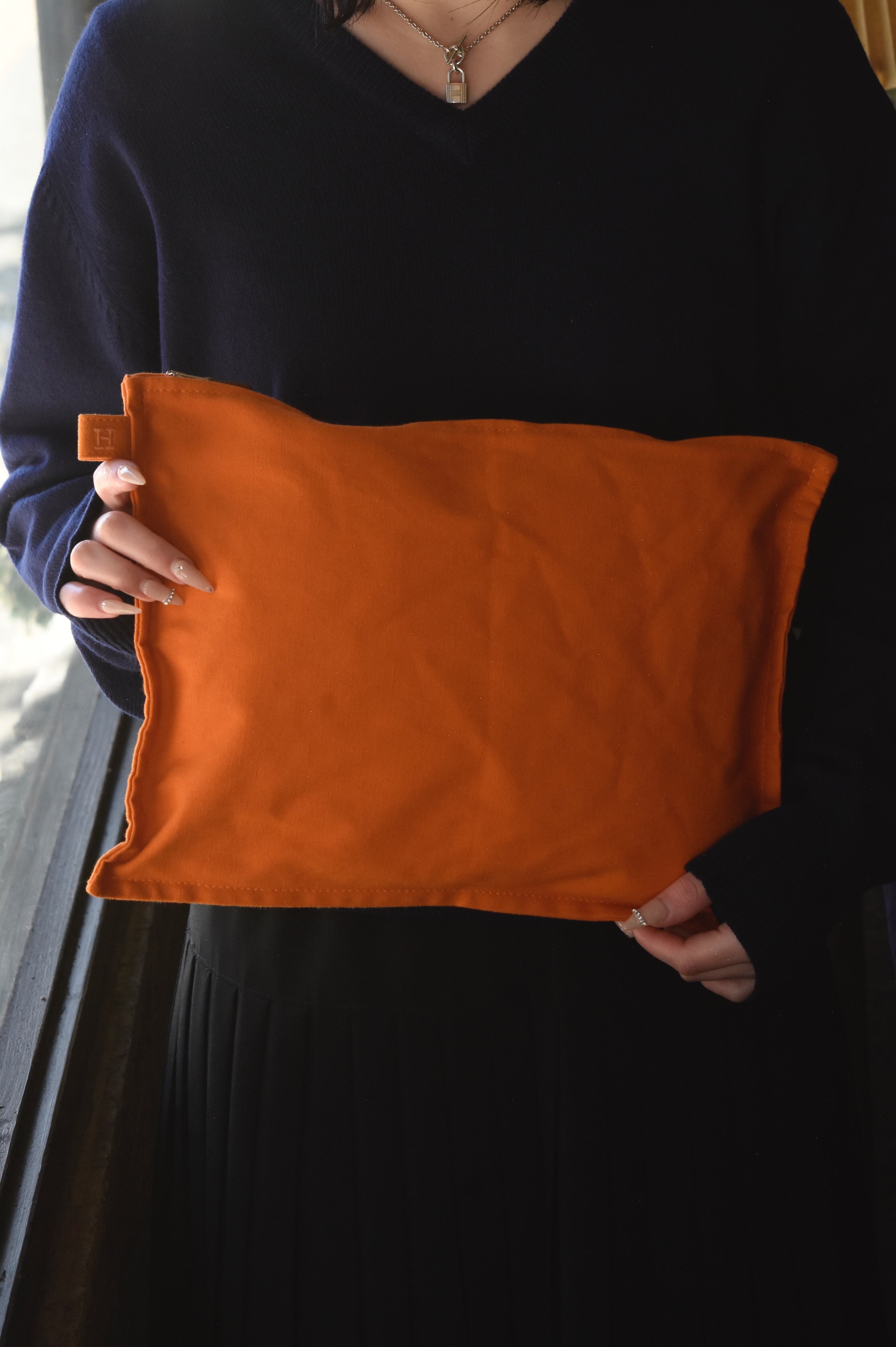 Hermès ”Bora Bora” canvas pouch (orange W35㎝×H26㎝)