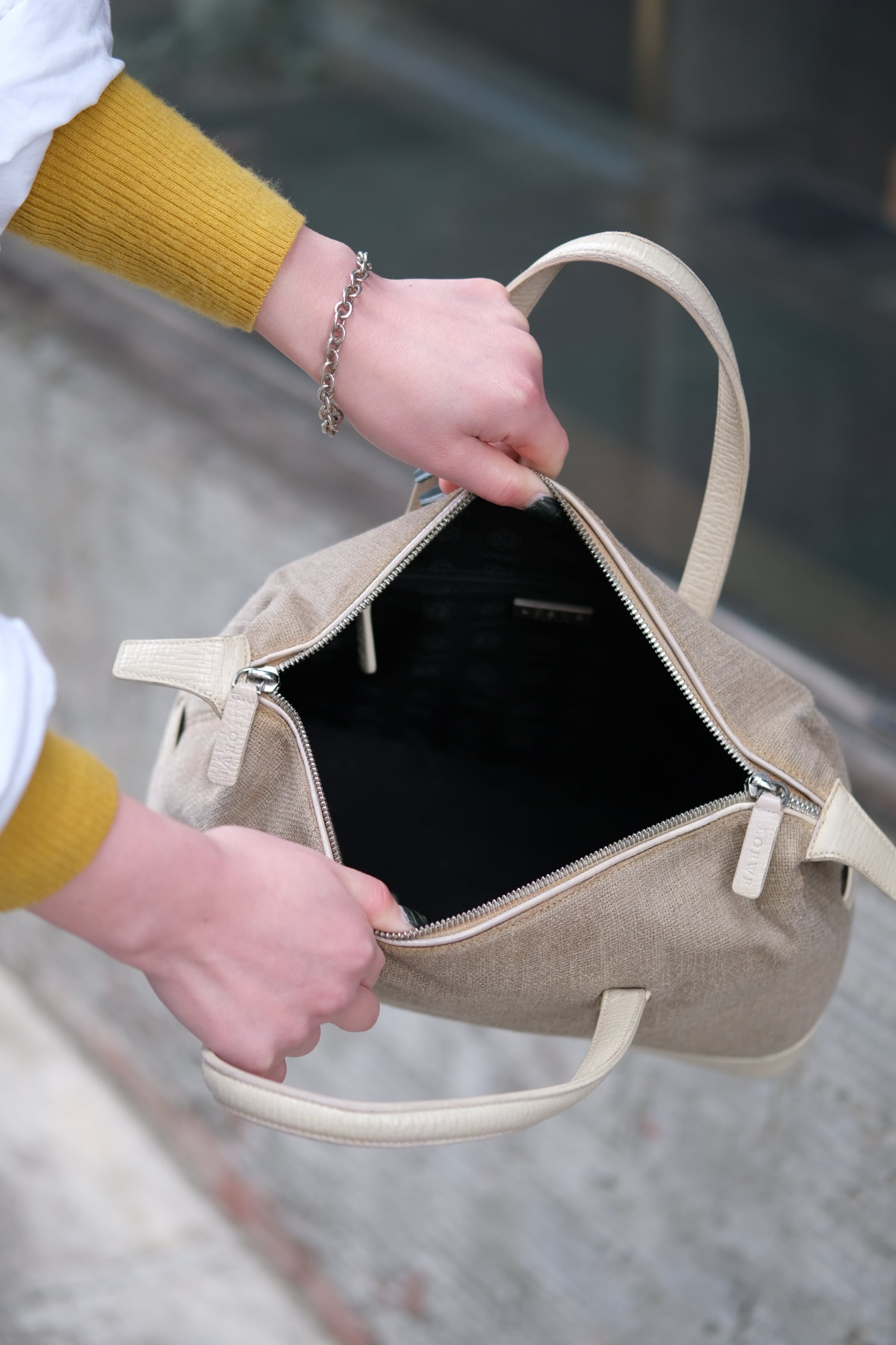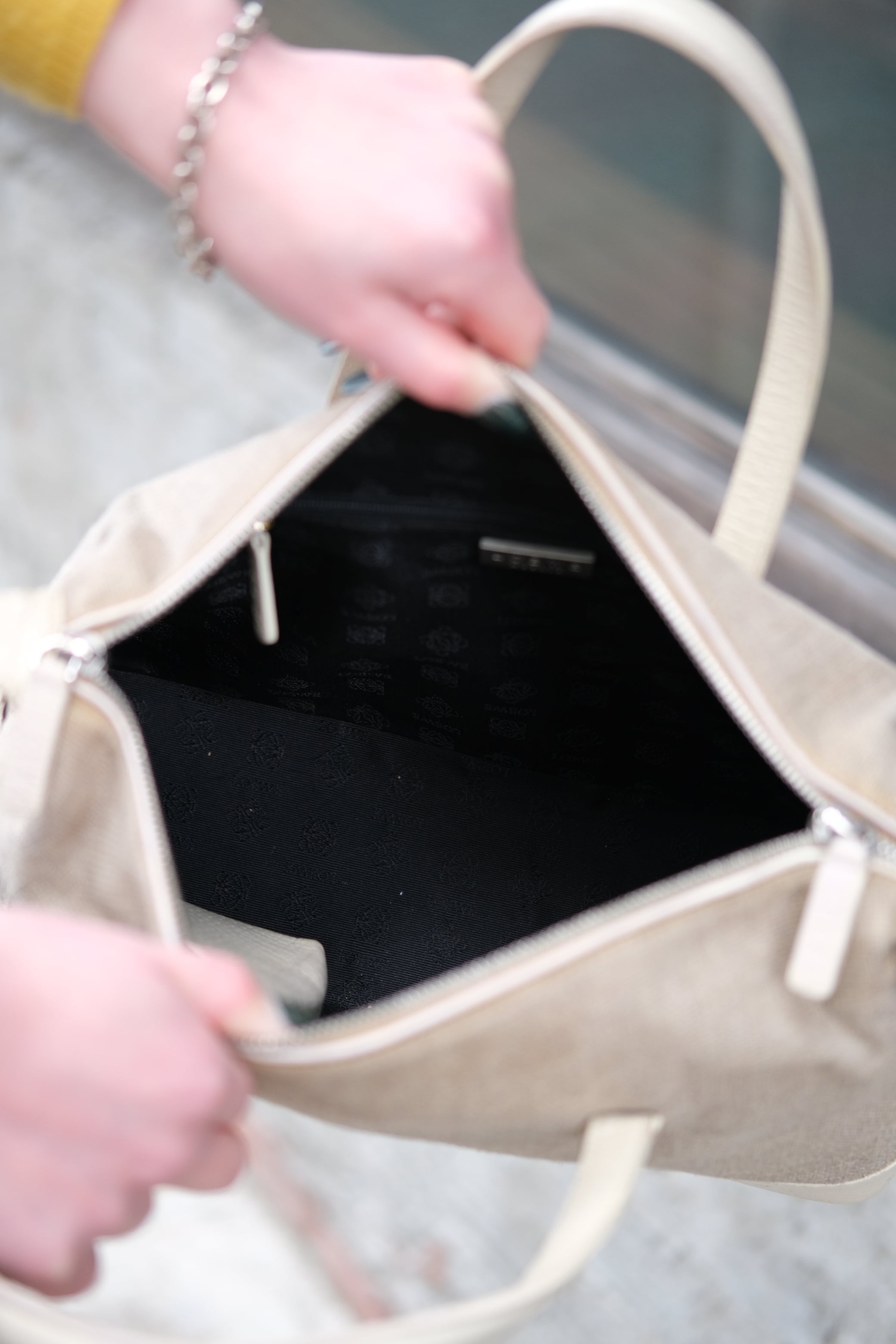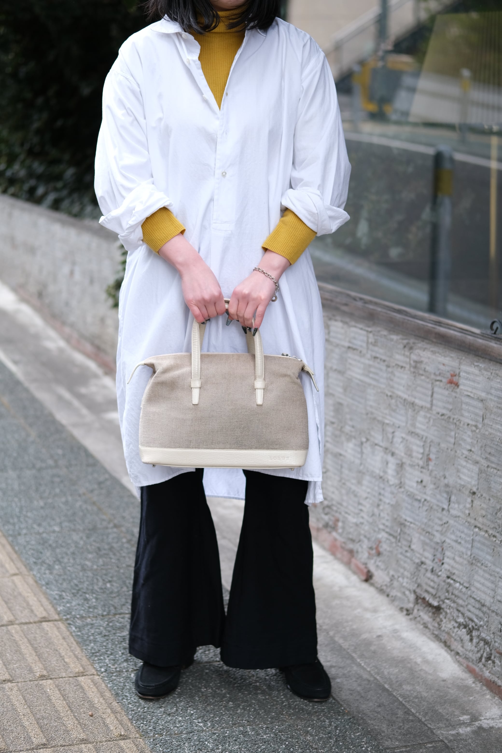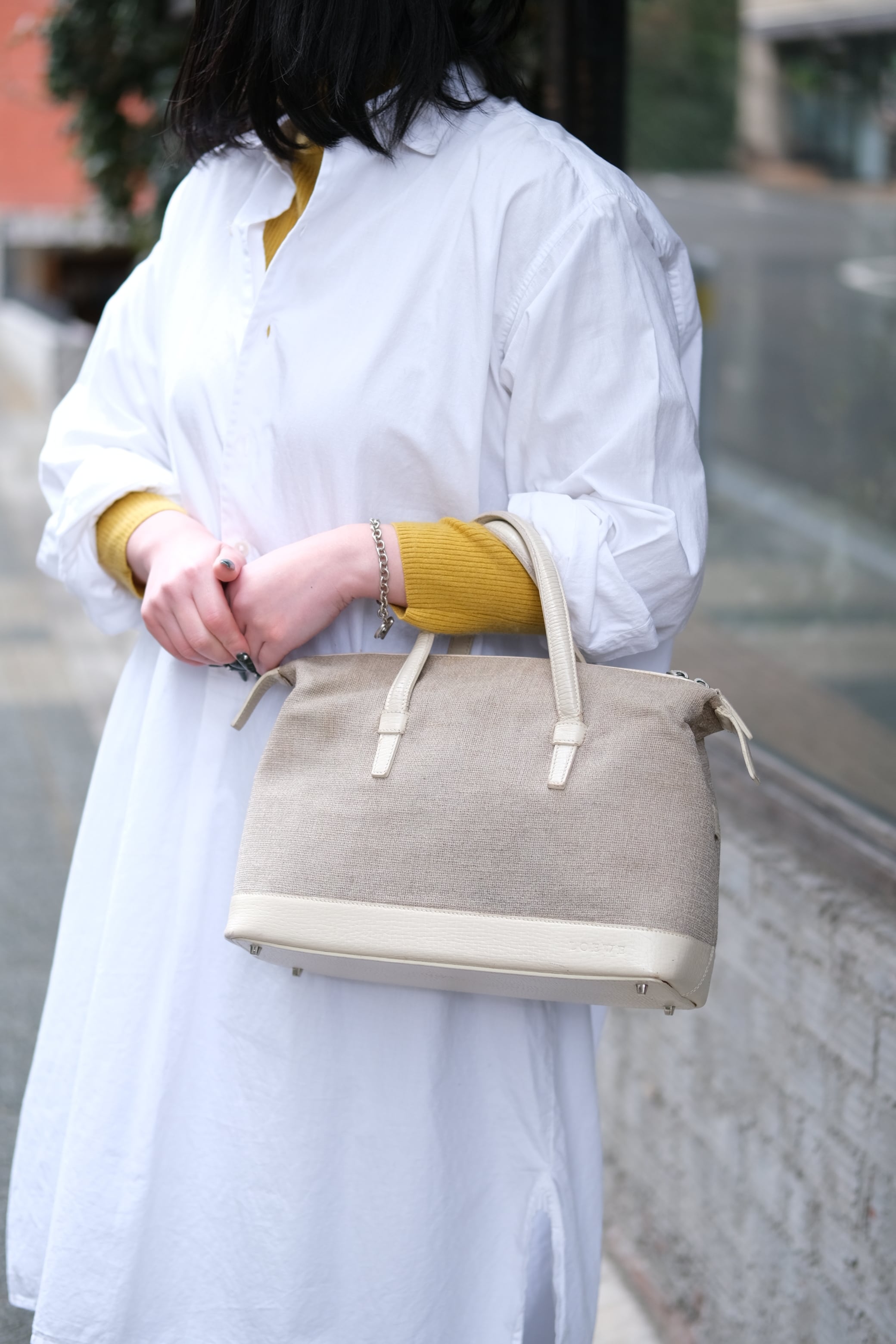 ヴィンテージのロエベバッグは、日常のコーディネートに自然に溶け込み、