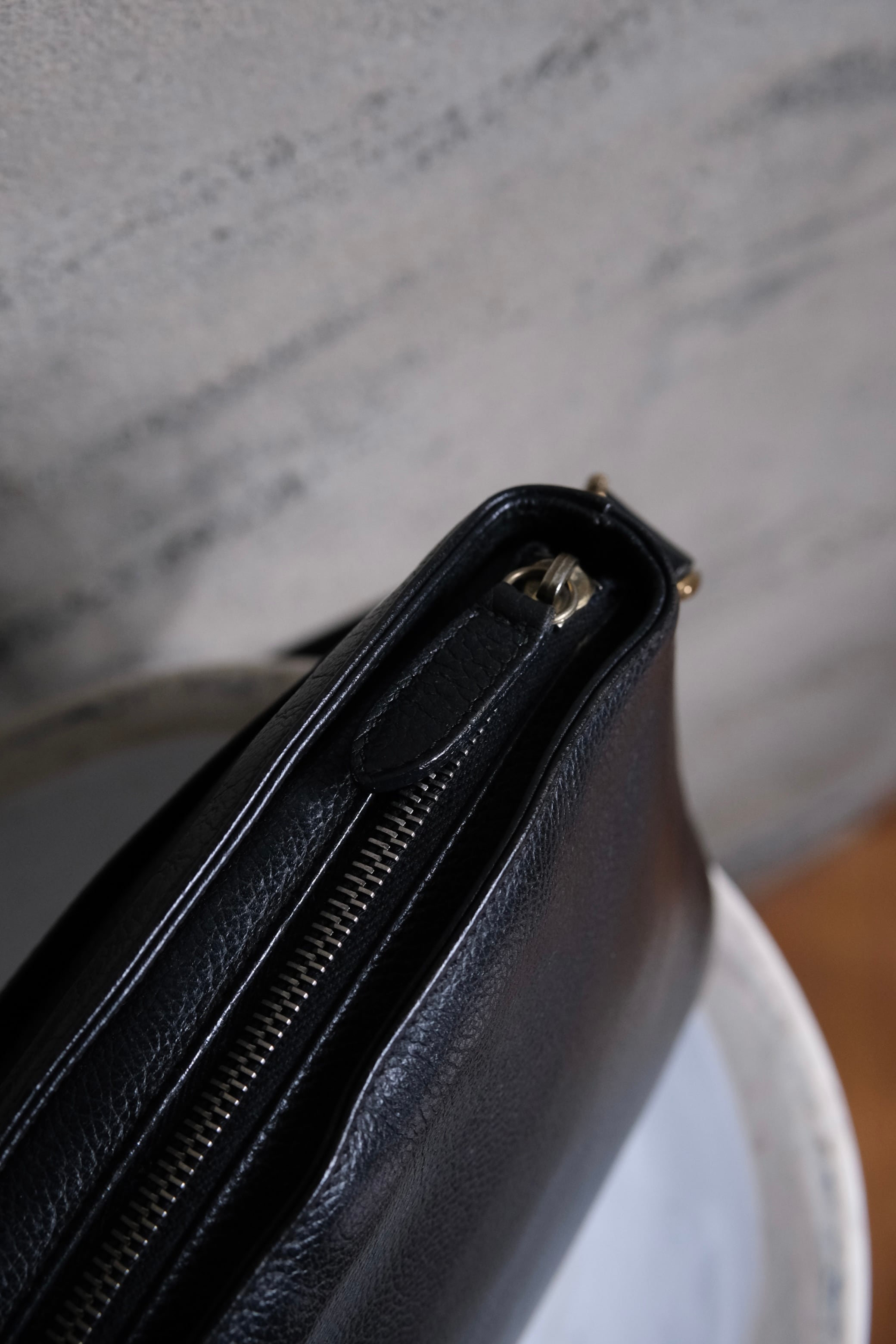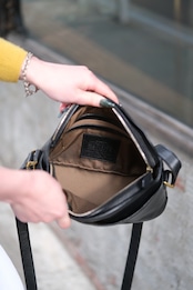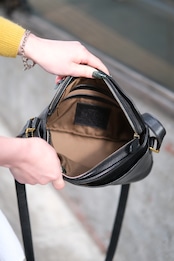 ブラックカラーのショルダーバッグは、