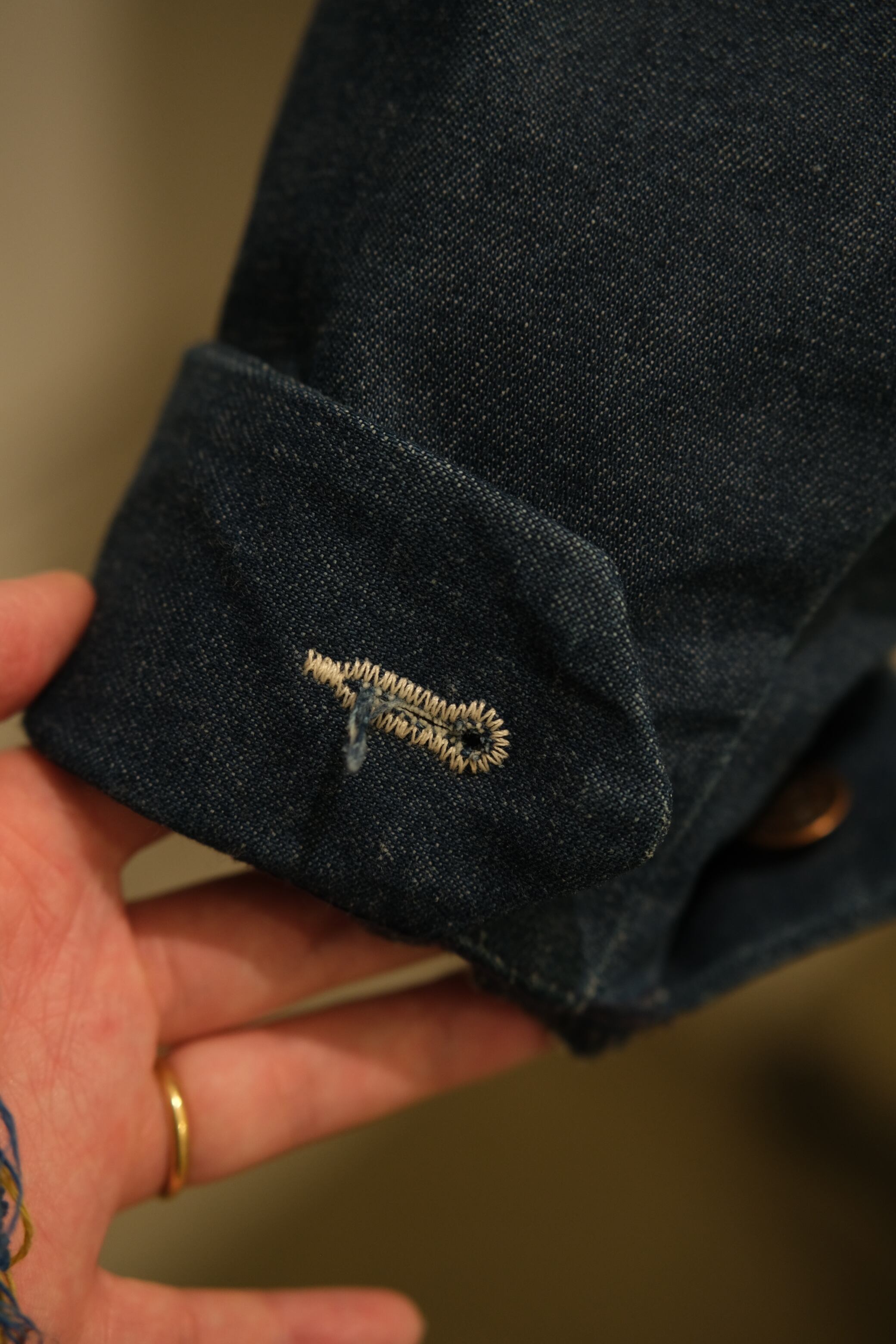 襟はコーデュロイ素材で、裏地にはブランケットが使用されています。
